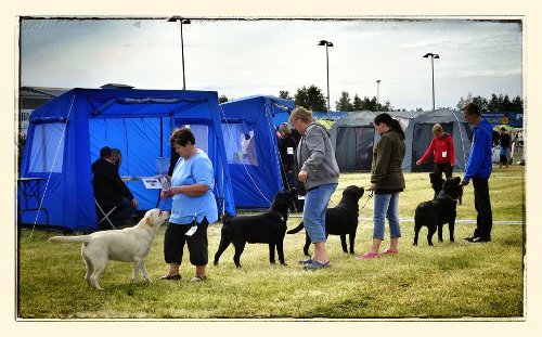 Jesse ja Toivo pyörhtivät Tuurin näyttelyssä. Toivo sai EH:n ja Jesse oli PU2.