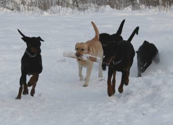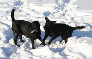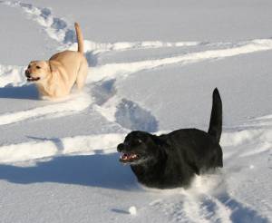 Koirakaverit Sumu ja Frodo kävivät isoja tyttöjä viihdyttämässä kun pakkaset hellittivät.